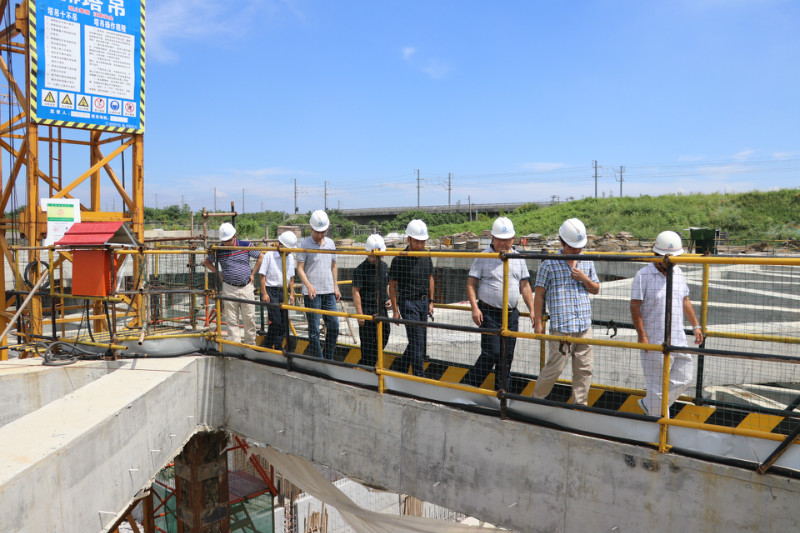領(lǐng)導(dǎo)一行查看胡大郢污水處理廠施工現(xiàn)場(chǎng)