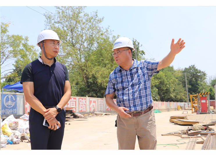 王穎哲董事長(zhǎng)聽取現(xiàn)場(chǎng)負(fù)責(zé)人匯報(bào)項(xiàng)目進(jìn)展及防暑降溫措施