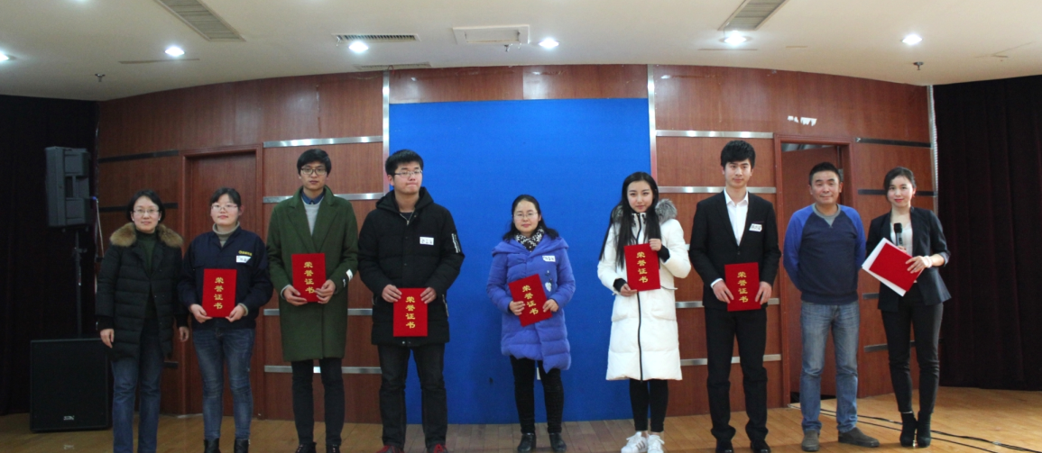 人事總監(jiān)謝婭和總經(jīng)理助理徐輝為獲得優(yōu)秀獎(jiǎng)的選手頒獎(jiǎng)并合影