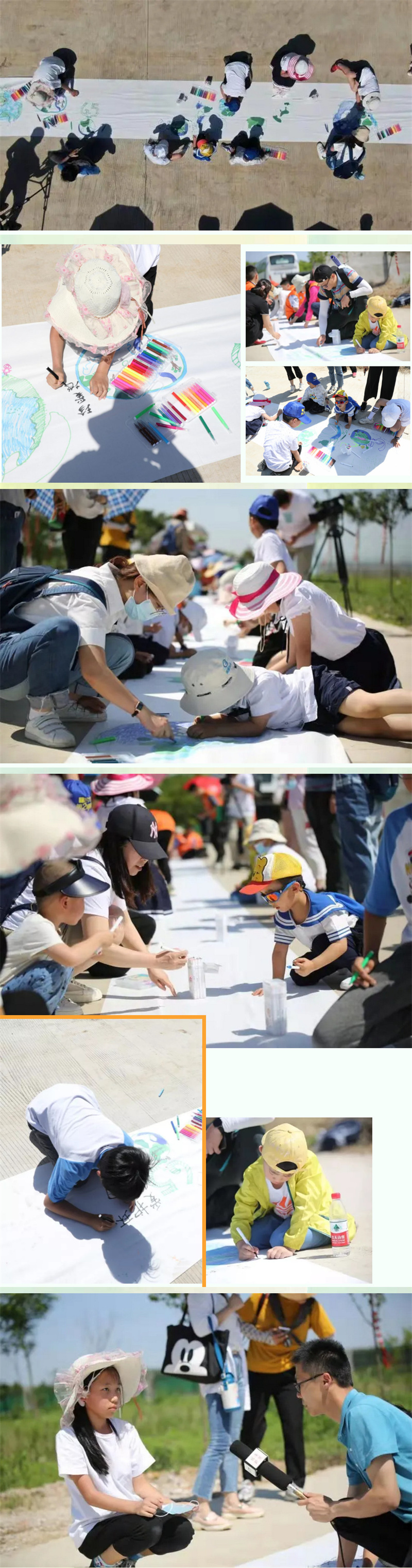 隨后,孩子們積極參與到保護地球百米畫卷繪畫活動中。從“歌手”搖身一變?yōu)椤爱嫾摇?,天馬星空的想象力、腦洞大開的創(chuàng)造力……孩子們用手中的彩色畫筆在百米長卷上盡情揮灑,畫出了他們心中、眼中的地球“母親”,“保護環(huán)境”、“珍愛地球”……畫卷上寫下的句句話語,是孩子們在幼小的心靈里立下的錚錚誓言。