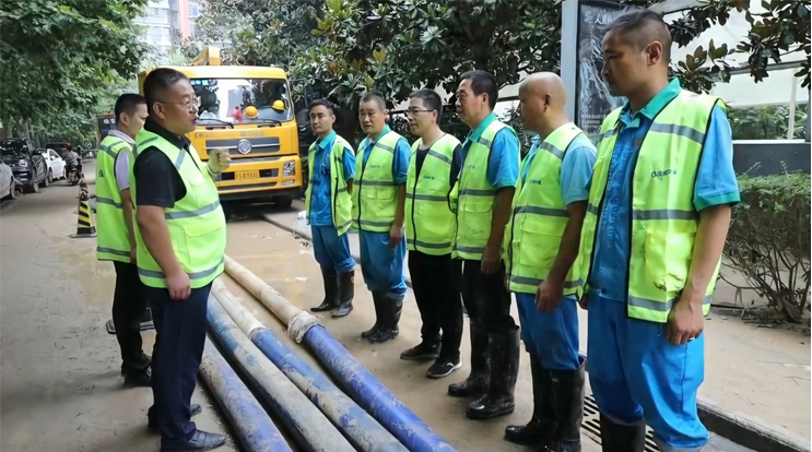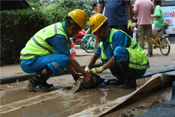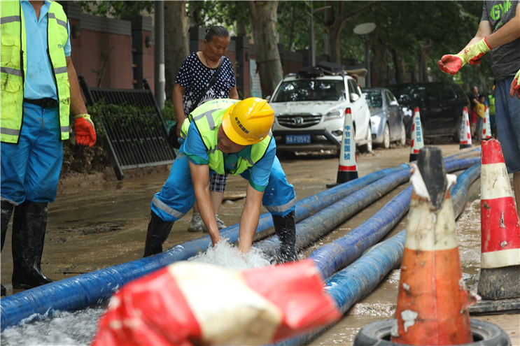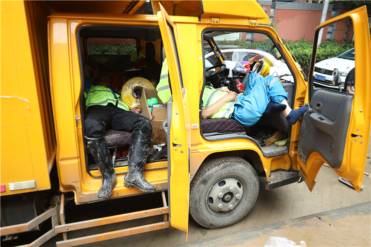 7月23日6點(diǎn),中節(jié)能國(guó)禎抽調(diào)6名專業(yè)工程人員組成第二突擊隊(duì),攜帶3輛皮卡巡查車、4臺(tái)搶險(xiǎn)泵奔赴河南。11時(shí)與第一突擊隊(duì)匯合,共同參與鄭州隆福國(guó)際小區(qū)地下車庫(kù)排澇作業(yè)。
